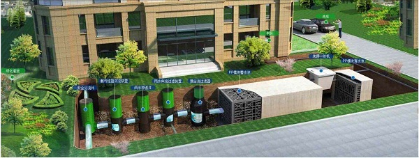 雨水管道-截污管道-雨水棄流過濾裝置-雨水自動過濾器-雨水蓄水模塊-消毒處理-用水點